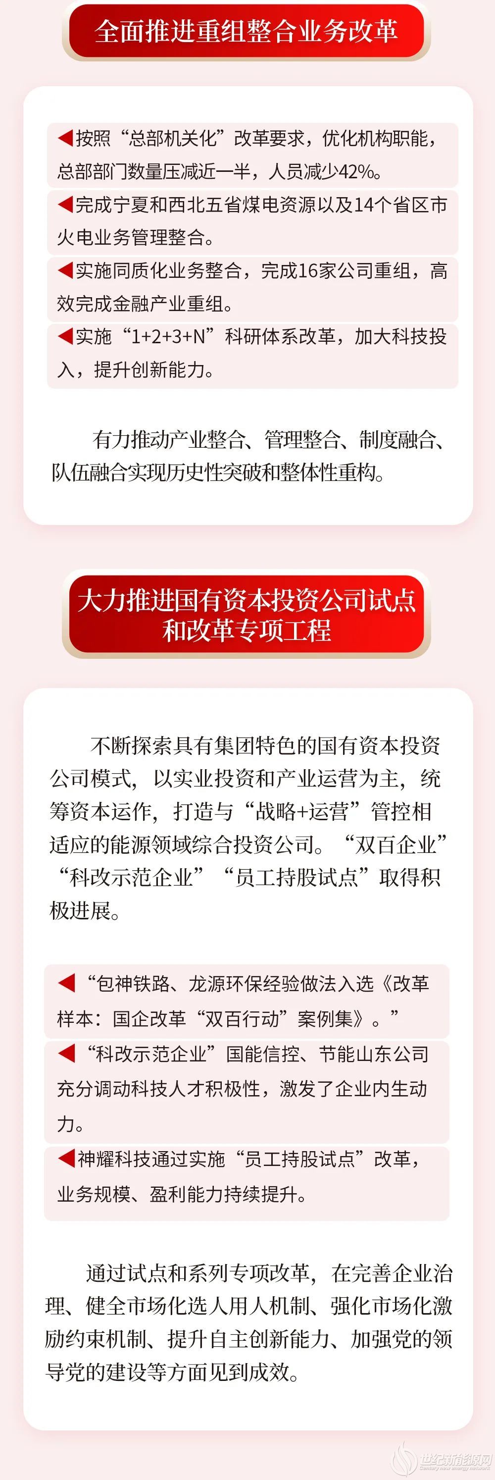 总部部门数量压减近一半,人员减少42%;完成宁夏和西北五省煤电资源以及14个省区市火电业务管理整合,完成16家公司重组;