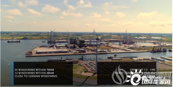 埃姆斯哈文港(Terminal Eemshaven)位于荷兰北部,距离周边多个海上风场都很近(距35个风场不足海里),港口可达性、可触及性、便利性非常强,航道和入海口宽大,可让三个叶片的风电设备顺畅进入港口内,发展港口经济有得天独厚的优势。现有100多家物流和服务公司,海上风电产业供应链成熟,帮助投资商节约了大量成本,成为涵盖比利时、丹麦、英国、德国等地重要的安装和组装基地。
