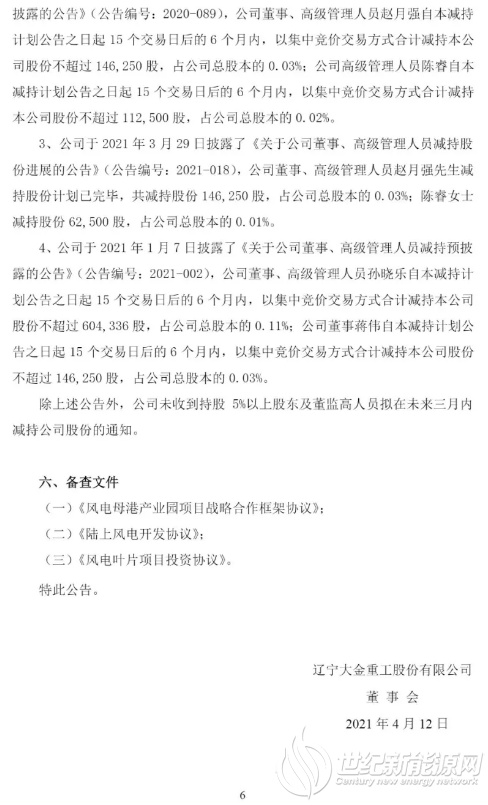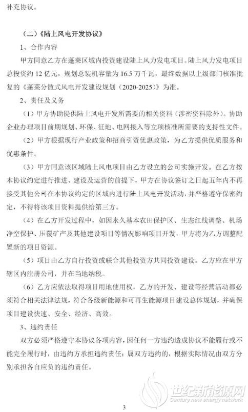 3、《蓬莱分散式风电开发建设规划(2020-2025)》中的陆上风电资源全部配置给大金重工。