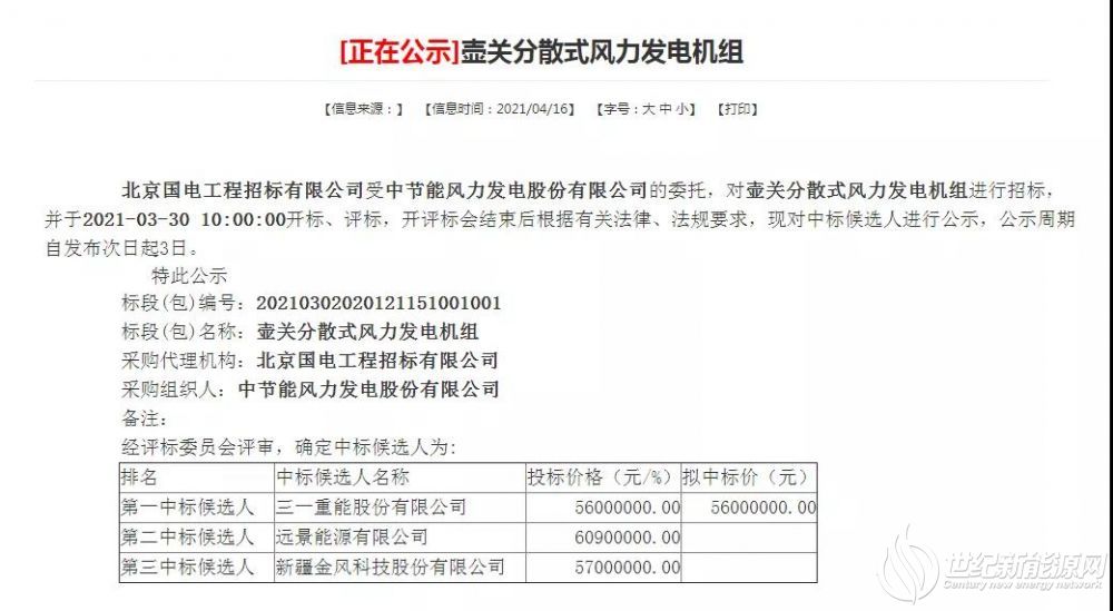 近日,三一重能成为中节能壶关分散式风电项目第一中标候选人。该项目装机容量20MW,单机要求3.0MW及以上,2021年9月15日前完成交货。