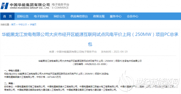 根据此前的招标公告,本项目风电场厂址位于黑龙江省大庆市让胡路区北部。