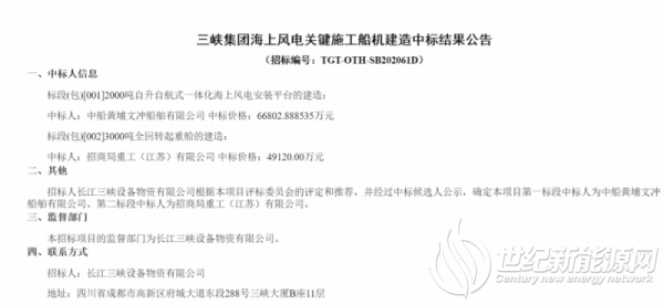 上个月,长江三峡设备物资有限公司“三峡集团海上风电关键施工船机建造”项目公布中标结果,中船黄埔文冲船舶有限公司和招商局重工(江苏)有限公司分别中标。