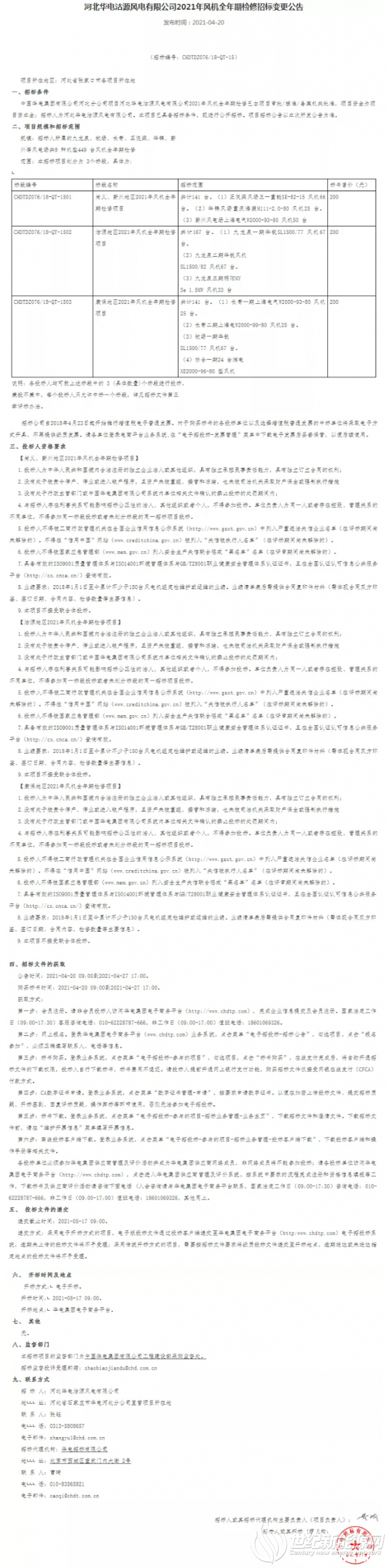 标段二为沽源地区2021年风机全年期检修项目,共计167台。其中,九龙泉一期华锐SL1500/77风机67台;九龙泉二期华锐风机SL1500/82风机67台;九龙泉三期明阳MYSe 1.5MW风机33台。
