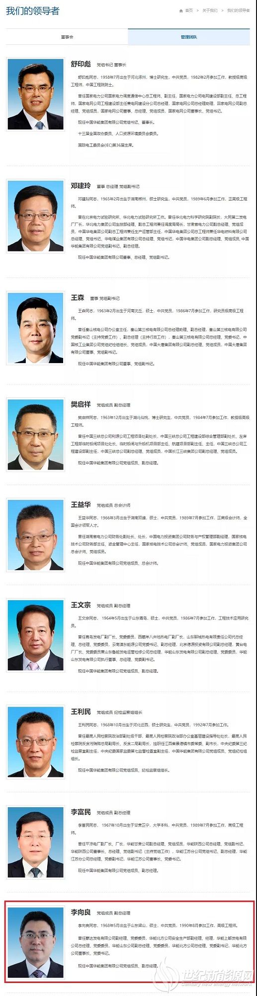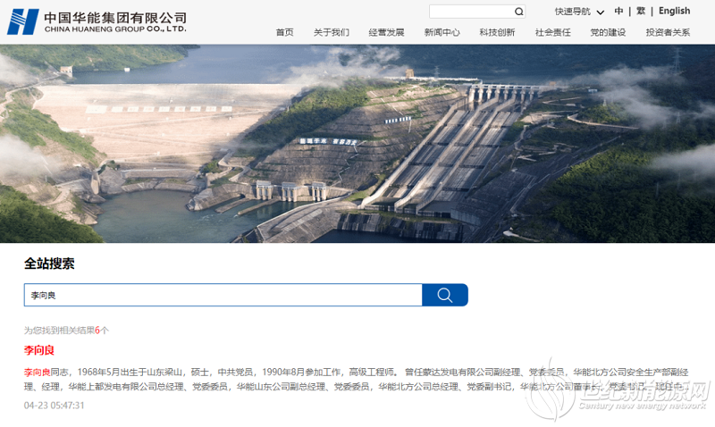 在华能集团官网的搜索中,李向良的简历于4月23日更新: