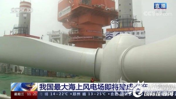 “现在正在吊装的5MW风机是我国目前海上的主力机型,平均转一圈,就能发五度电,一个小时就能发五千度电,可满足一个家庭的两年用电。”央视记者在直播中介绍道。
