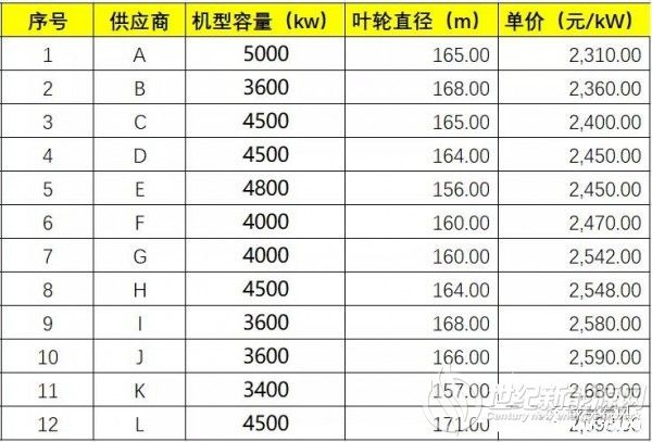 如果大家简单的认为价格最低就是最佳,我想行业内的业内专家领导肯定不会同意, 这个项目是一个限定最低单机容量,最高容量不封顶,这也就导致了12家风机厂家投出了10个机型,机型的复杂其实增加了风电场开发业主的选择难度,今天我这里就进行一个简单的分析,边界条件是风机的Cp值(能量转换洗漱)保持一致(平均水平),折减系数在同一个水平,我们看看各种机型的竞争差异。