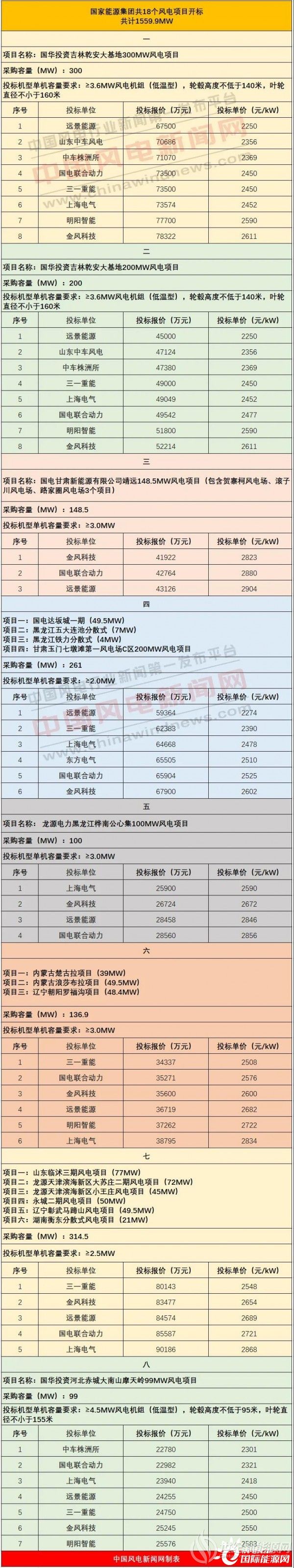 重磅!国家能源集团1559.9MW风电项目开标,9家整机商竞标!(附报价信息)