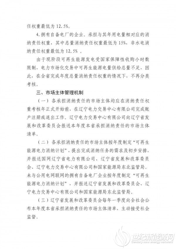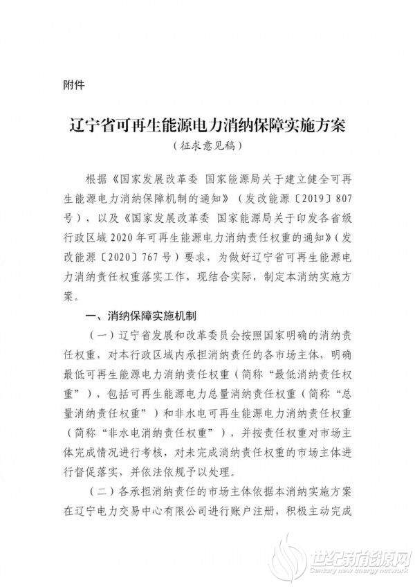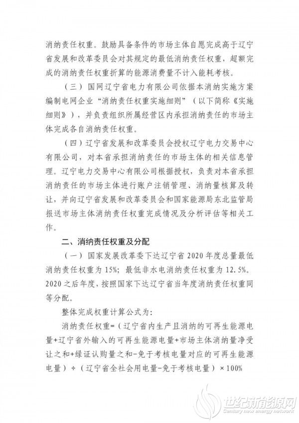 《意见稿》显示,国家发改委下达辽宁省2020年度总量最低消纳责任权重为15%;最低非水电消纳责任权重为12.5%。2020之后年度,按照国家下达辽宁省当年度消纳责任权重同等分配。