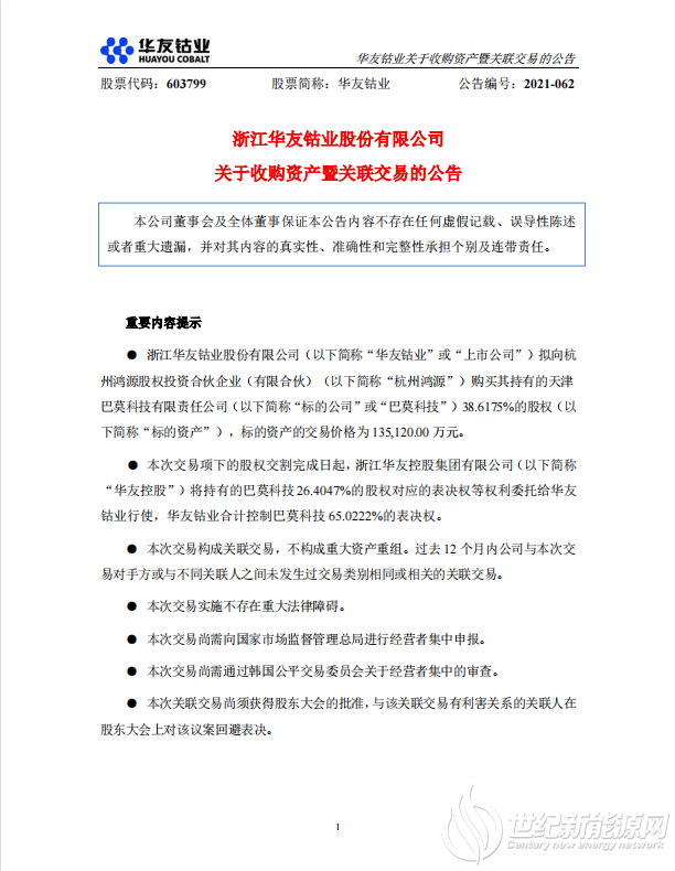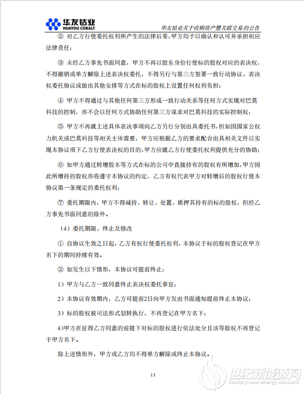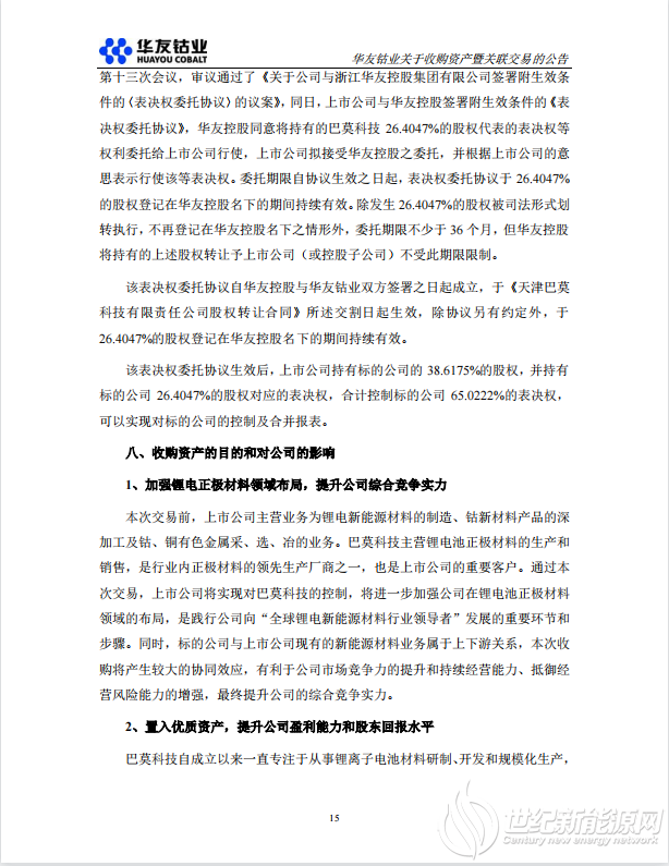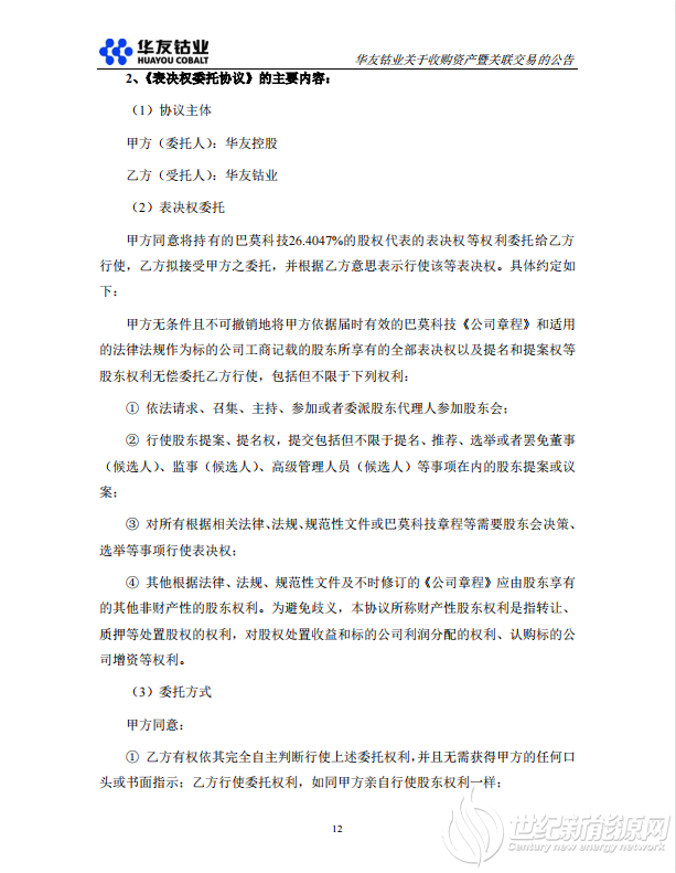 公告指出,巴莫科技 38.6175%的股权对应的注册资本为7642.18万元,华友控股同意将持有的巴莫科技26.4047%股权代表的表决权等权利委托给华友钴业行使。