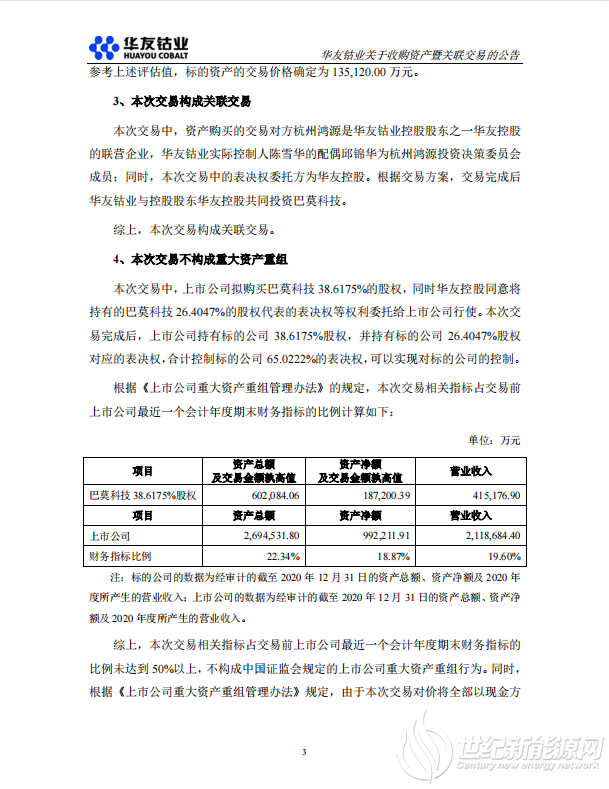 本次交易完成后,华友钴业将直接持有巴莫科技38.6175%股权,持有巴莫科技26.4047%股权对应的表决权,合计控制巴莫科技65.0222%的表决权,可以实现对巴莫科技的控制。
