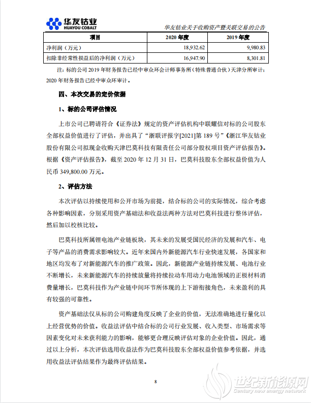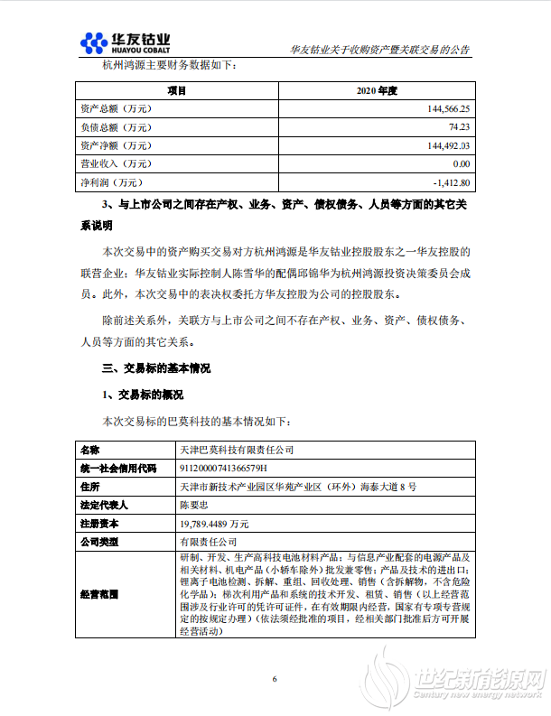 华友钴业自己披露的天津巴莫评估报告显示,天津巴莫的经营范围包括研制、开发、生产高科技电池材料产品;与信息产业配套的电源产品及相关材料、机电产品(小轿车除外)批发兼零售;产品及技术的进出口;锂离子电池检测、拆解、重组、回收处理、销售;梯次利用产品和系统的技术开发、租赁、销售。