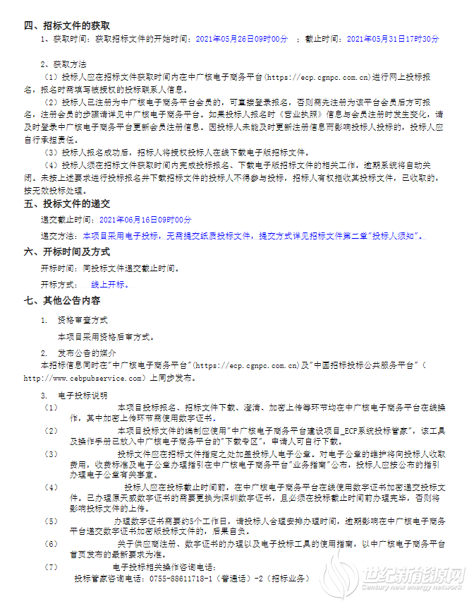 中广核新能源北方大区2025-2027年叶片维修框采标段一公示