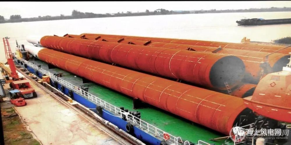 中铁大桥局集团有限公司三峡长乐外海海上风电场A区风机基础钢管桩,委托江苏巨鑫钢管制造,直径为φ3000-3500,单支长度为60-91米,总重量为10000吨,材质: Q355NC,钢管桩壁厚:38/50/60mm。该订单于2021年5月全部交付。