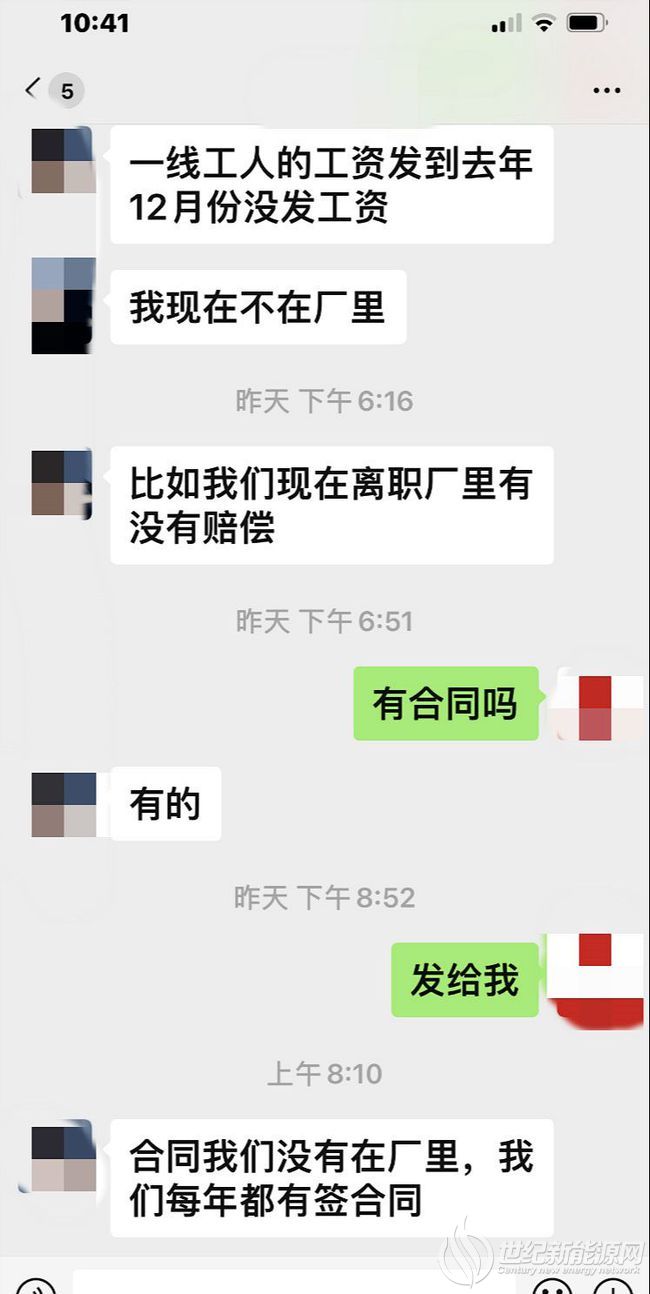 “我们厂里现在已经有5个月的没发工资了,现在不知道怎么办!我们工厂是在阜宁,江苏神山风电设备制造有限公司。目前情况是:“一线工人的工资发到去年12月份,之后就不发工资;还有员工5/6个月都没有发工资的!如果现在离职,可以要求厂里赔偿吗?合同应该一式双份,个人和厂里一人一份,但是没有给我们员工的!现在我们想要回自己应该得的工资!”