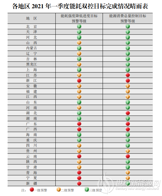 国家发改委强调,预警等级为一级和二级的地区,要坚决对一季度严峻的节能形势保持高度警醒,深入分析、深刻反思出现问题的原因,切实采取有力措施,迅速扭转工作被动局面,确保完成今年能耗双控目标特别是能耗强度降低目标任务。