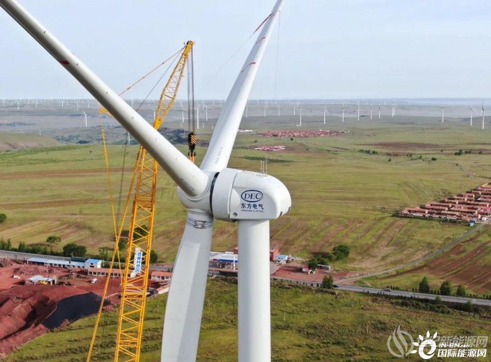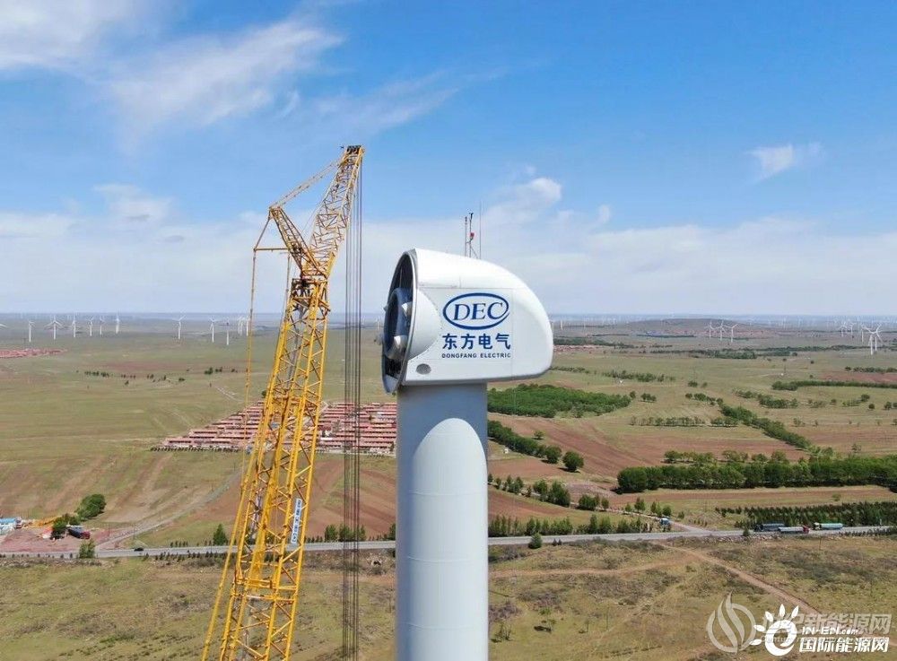 2020年7月13日,东方风电自主研制的当时国内单机容量最大的DEW-D4.5S-155型风电机组并网发电,时隔不到一年,全新一代、仍是陆上单机容量最大的DEW-D5.5S-172型风电机组完成吊装,东方风电以技术创新保持着高端产品“领跑”。当前,现场工作团队正有序推进机组并网各项工作,计划于本月底实现并网发电。
