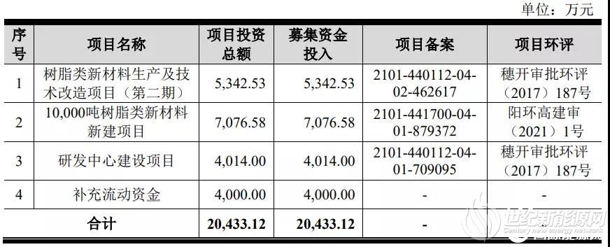 据招股书显示,聚合科技本次计划募集资金2.04亿元,分别用于树脂类新材料生产及技术改造项目(第二期)、10,000吨树脂类新材料新建项目、研发中心建设项目以及补充流动资金。本次募集资金投资项目完全达产达效后,公司风电叶片用环氧树脂类产品产能将增加20600吨/年,增幅约180.70%。