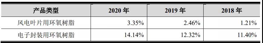 聚合科技主营业务为风电叶片用环氧树脂、电子封装用环氧树脂、粉末涂料、有机硅树脂和其他新型复合材料等产品的研发、生产和销售,产品被广泛应用于风力发电叶片、新能源汽车、电子元器件、LED 封装、 运动器材和汽车轻量化等领域。其中环氧树脂类产品为聚合科技的主营业务,主要产品市场占有率见下图: