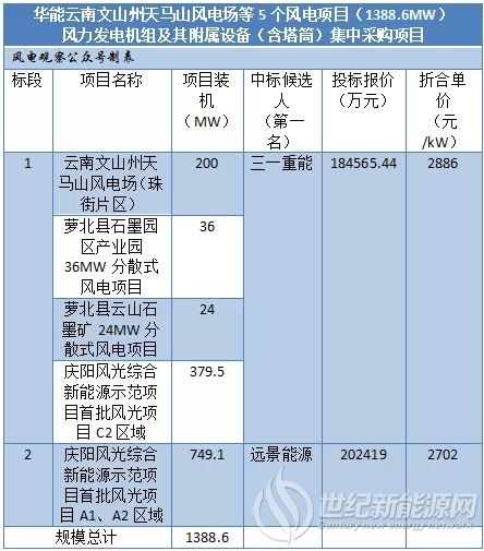 2702 & 2886元/kW!华能1388.6MW风电项目开标,这两家整机商瓜分!