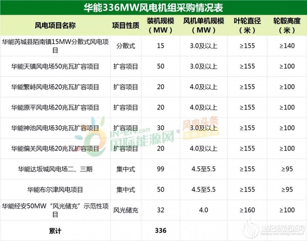 具体来看,分散式风电项目为华能芮城县陌南镇风电项目,装机规模为15MW;扩容项目为天镇、繁峙、原平、神池、偏关五所列入《山西省2021年风电技改扩容项目开发建设方案》中的风电场,项目装机规模累计140MW;集中式风电项目为新疆达坂城风电场二、三期风电项目和布尔津风电项目,累计装机规模为149MW;另外,华能经安50MW“风光储充”示范性项目32MW风力发电机组也进行采购。