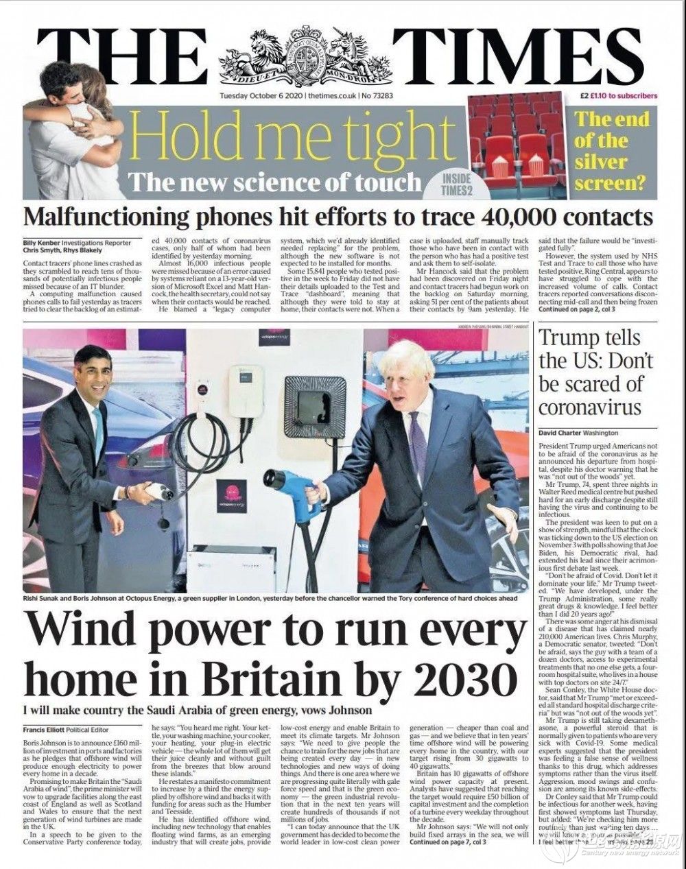 英国《泰晤士报》报道首相约翰逊谈海上风电发展计划