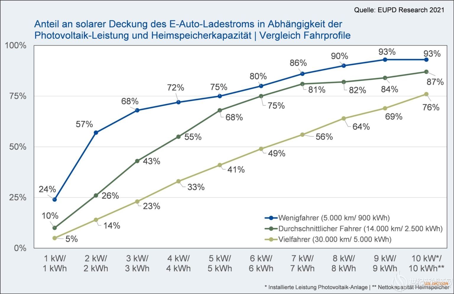 EUPD Research还表示,太阳能+储能解决方案可以大大降低充电成本。它认为,一套10 kW的系统配上储能可以节省高达52%的充电成本。这相当于每年节省415欧元。