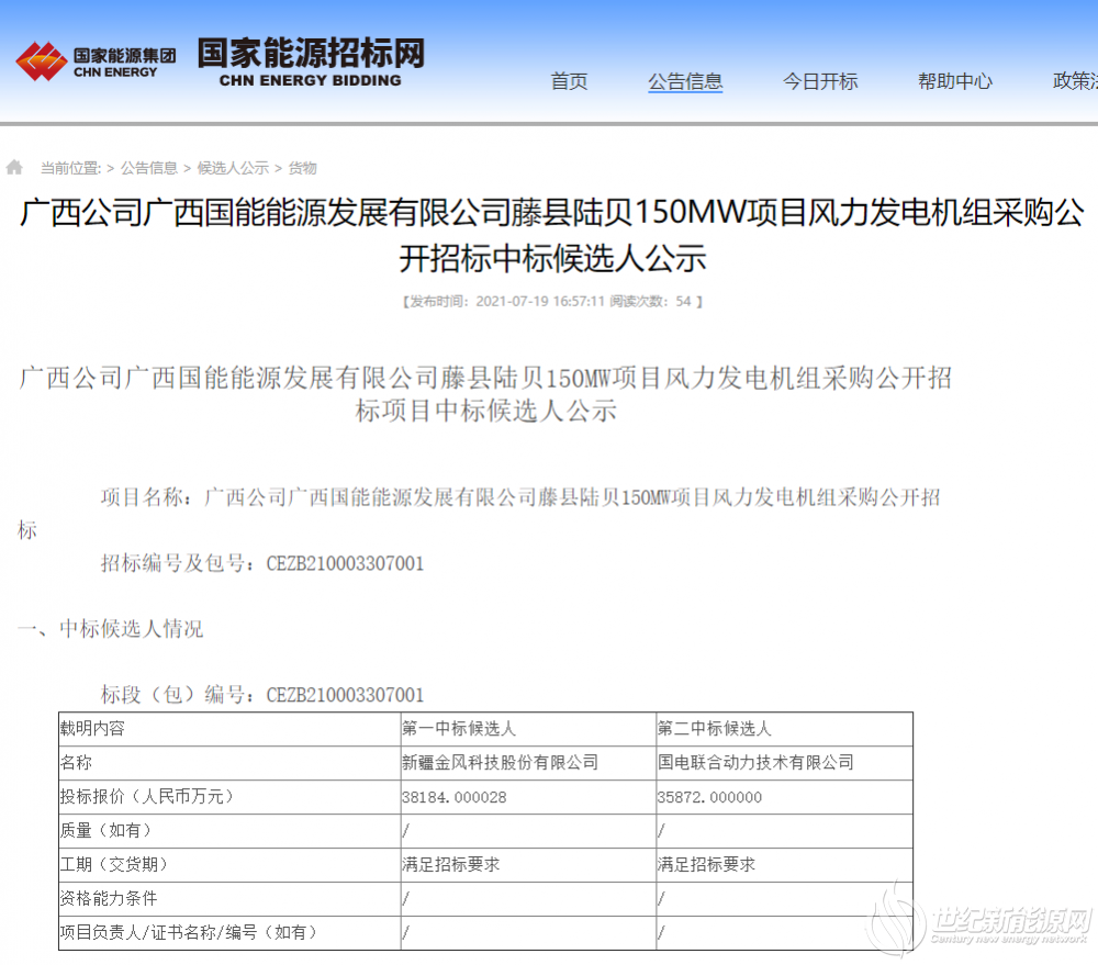 招标范围:单机容量4.0MW及以上,叶轮直径≥160m,总容量为150MW(允许偏差不大于2%总容量)成套的风力发电机组及附属设备,同时也包括所有必要的材料、备品备件、专用工具、消耗品以及调试、设计、技术资料和技术服务(含设备运输、叶轮组装抬升工装);风机机舱、叶片、轮毂等大件设备运输至指定堆场交货,电缆、螺栓等附件在风电场内指定地点交货,风机设备工装装车、返厂运输等。