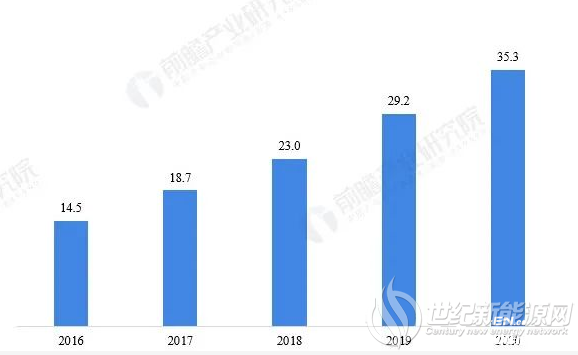 2016-2020年全球海上风电发展趋势(单位GW,数据来源GWEC)
