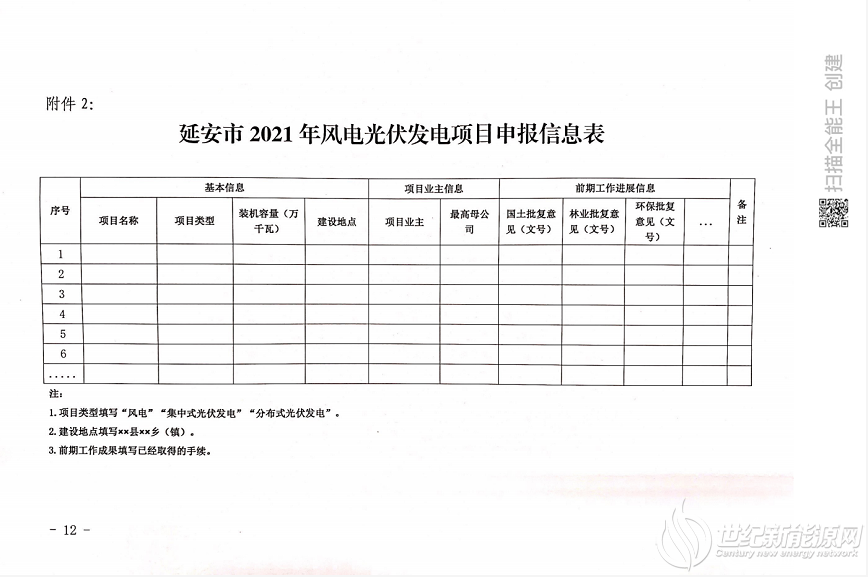 《通知》明确2021年陕西省延安市2021年保障性风电、光伏规模为2GW。
