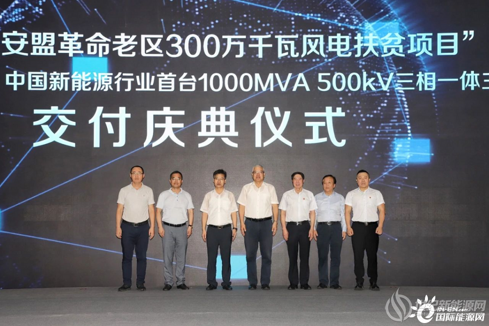 中广核兴安盟革命老区300万千瓦风电扶贫项目于2019年5月获得国家核准,是国内首个风电大基地项目。此次下线交付的变压器由华朋集团供应,是国内新能源行业首台1000MVA 500kV三相一体主变压器,也是中广核新能源建设项目中最高电压、最大容量的变压器。此次主变压器的成功交付,刷新了国内新能源行业首台纪录,是我国风电装备国产化又一次重大飞跃,是对加快实现我国“双碳”目标的具体响应。