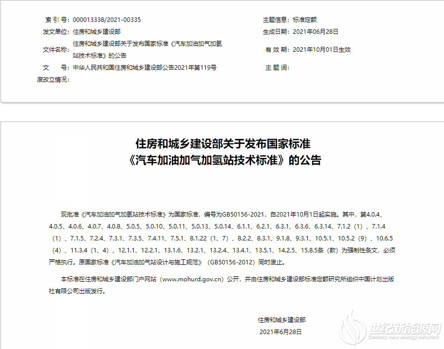 7月30日,住房和城乡建设部发布“住房和城乡建设部关于发布国家标准《汽车加油加气加氢站技术标准》的公告”。