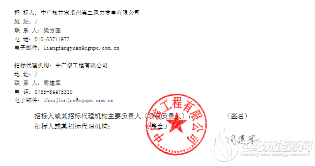中广核甘肃北大桥第八风电场风电机组设备采购