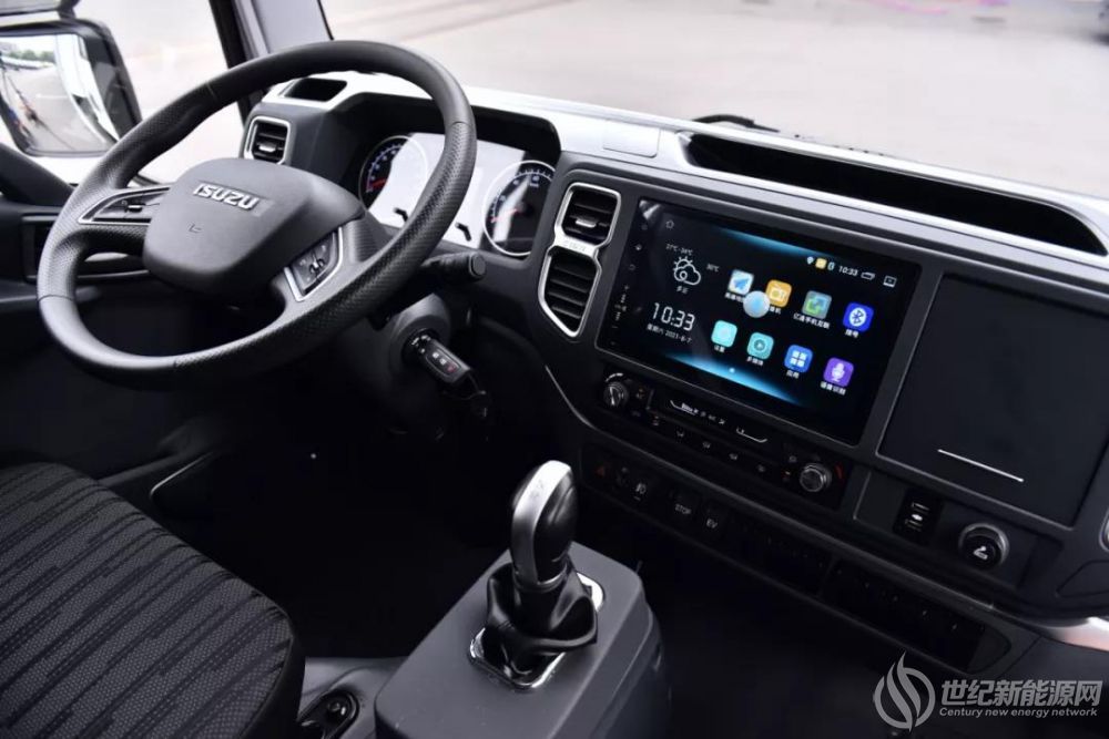 这批庆铃M系列氢燃料电池车为厢式运输车,其外观尺寸为:7083×2326×3210mm,驱动形式为中置后驱,燃料电池系统额定功率70kW,驱动电机峰值功率160kW,扭矩为950N·m。满载等速法续航里程:纯氢501km/综合551km,最高车速90km/h,最大爬坡30%。