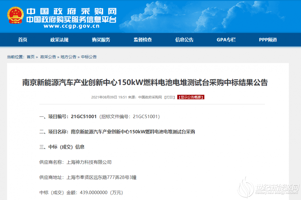 上海神力科技有限公司以439.0000000(万元)的成交金额中标。