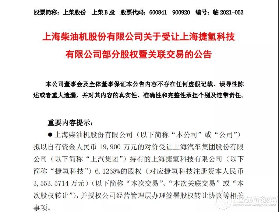 除了氢能资产, 上柴股份还收购了上汽集团下属的发动机和重卡业务,以形成重型卡车和柴油发动机两大产业板块协同发展的格局。
