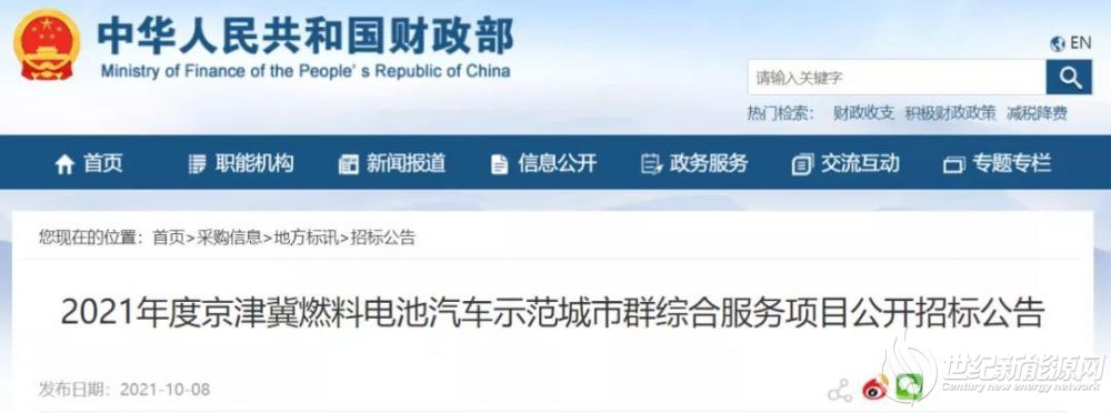 2021年度京津冀燃料电池汽车示范城市群综合服务项目公开招标公告
