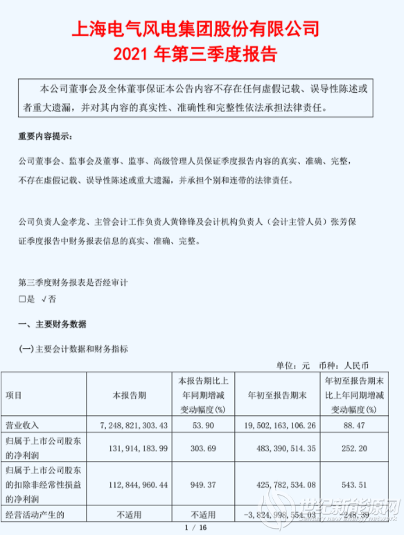 电气风电三季度业绩报出炉!营收195.02亿元!