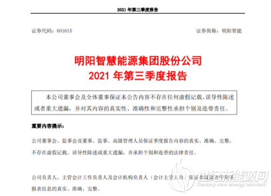 明阳智能三季度报公布!营收184.3亿元 净利21.6亿元!