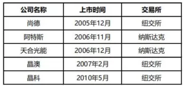 彼时,中国光伏行业快速发展,多家知名光伏企业纷纷登陆海外资本市场,享受资本红利,实现了快速发展。诸如,尚德2005年纽交所上市,阿特斯、天合2006年纳斯达克上市,晶澳2007年纽交所上市。此外,还有昱辉阳光、赛维LDK等也成功登陆了海外资本市场。