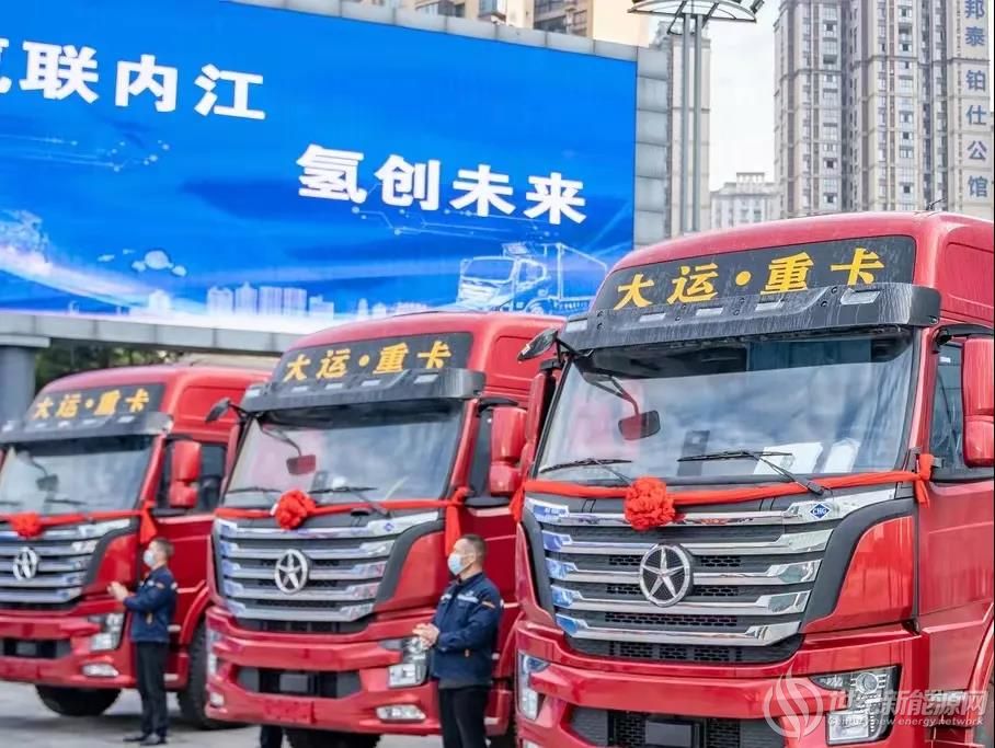 西部首条氢燃料电池重卡示范线项目主要应用于川威集团矿石、矿渣、钢材等原材料运输。目前,首期采购了7辆,采用由成都亿华通动力科技有限公司与成都大运汽车集团有限公司联合开发的49吨氢燃料电池重型牵引车,燃料电池续航可达450公里,具备环保无污染、续航里程长、负荷载重大、加氢时间短等特点。