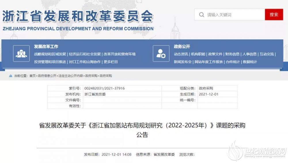 省发展改革委关于《浙江省加氢站布局规划研究(2022-2025年)》课题的采购公告