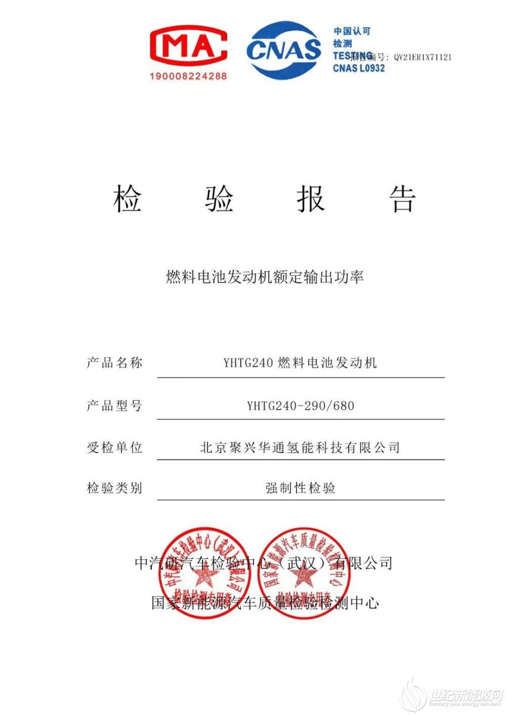 亿华通240kW燃料电池发动机通过中汽中心检测 各项性能参数优异