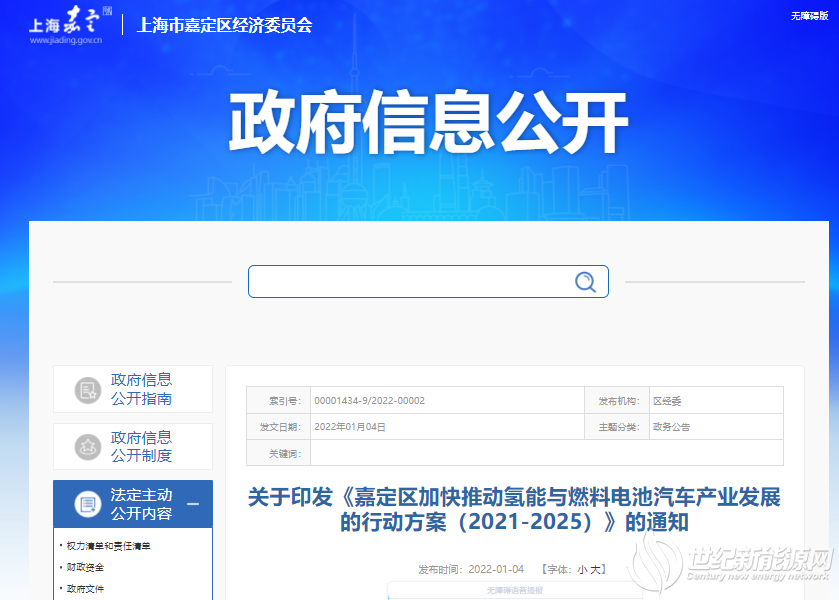 《嘉定区加快推动氢能与燃料电池汽车产业发展的行动方案(2021-2025)》