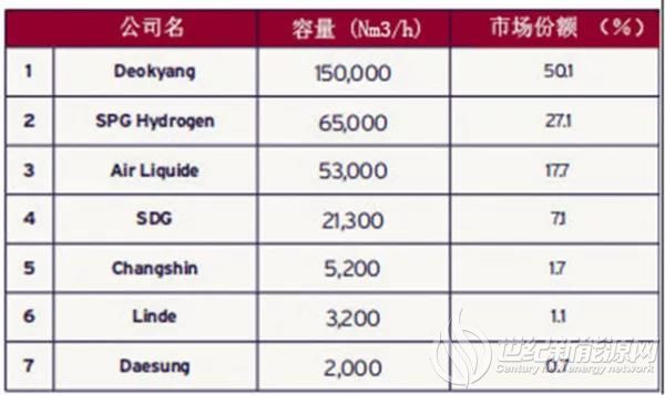 韩国拥有三大石化综合体。韩国各有一家大型炼油厂:1)蔚山(SK Energy和S Oil),2)Yeosu(GS Caltex),和3)Seosan/Daesan(现代Oilbank)。大约90%的当地的氢气生产是作为副产品分配给客户的。德阳Daesung是韩国最大的氢气供应商。
