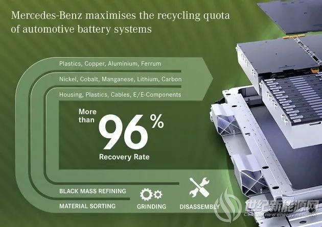 奔驰考虑到梅赛德斯-EQ系列车型锂离子电池生命周期的相关问题,因此明确将最大限度的循环再利用以节约资源。据悉,新建电池回收工厂的回收率高达96%。