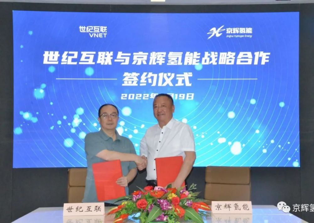 4月19日,京辉氢能集团有限公司(以下简称:京辉氢能)与世纪互联数据中心有限公司(以下简称:世纪互联)在北京签署战略合作框架协议,双方将以各自的资源和专业能力为基础,发挥在产学研、品牌、技术、人才、产业链等各方面的优势,共同探讨氢能装备制造、多元化制氢、绿电氢储、氢能示范与大数据、云计算、数据中心等技术进行深度融合。