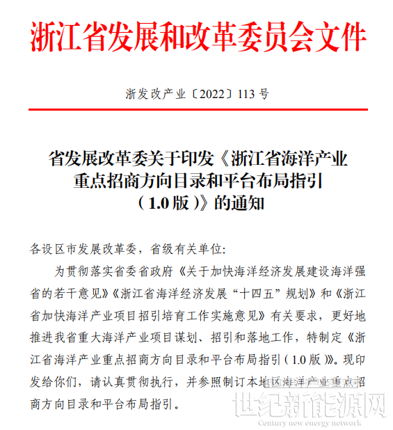 近日,浙江省发展改革委印发《浙江省海洋产业重点招商方向目录和平台布局指引(1.0版)》,明确海洋电子、海洋生物医药、海洋新材料、高端船舶与海工装备、氢能、油气全产业链、现代海洋渔业、现代港航服务和滨海文化旅游等9个重点招商方向,筛选确定一批项目承载平台和区块,为海洋产业重大项目谋划、招引和落地提供指引。
