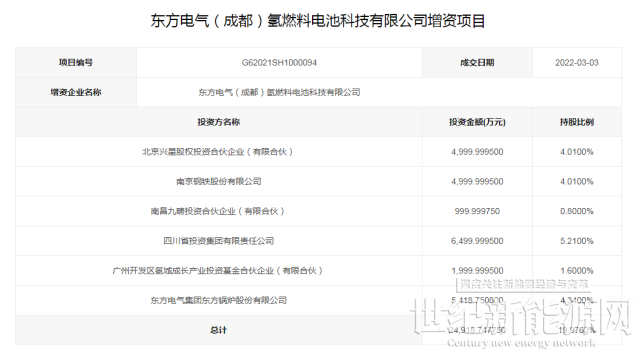 东方氢能2021年增资扩股项目在上海联交所正式完成交易,成功引入川投集团、东方锅炉、南钢股份、兴星基金、氢城成长基金、九畴基金共6家新的战略投资者。这是东方氢能继2019年混合所有制改革以来又一次市场化的资本运作,是公司坚持实施资本运作和技术创新“两轮驱动”战略的具体实践。