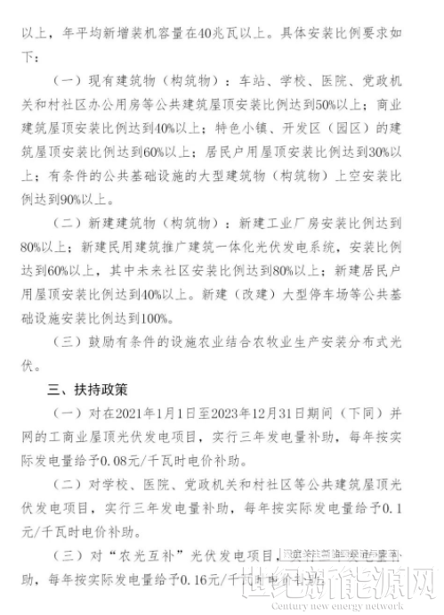 (一)对在2021年1月1日至2023年12月31日期间(下同)并网的工商业屋顶光伏发电项目,实行三年发电量补助,每年按实际发电量给予0.08元/千瓦时电价补助。