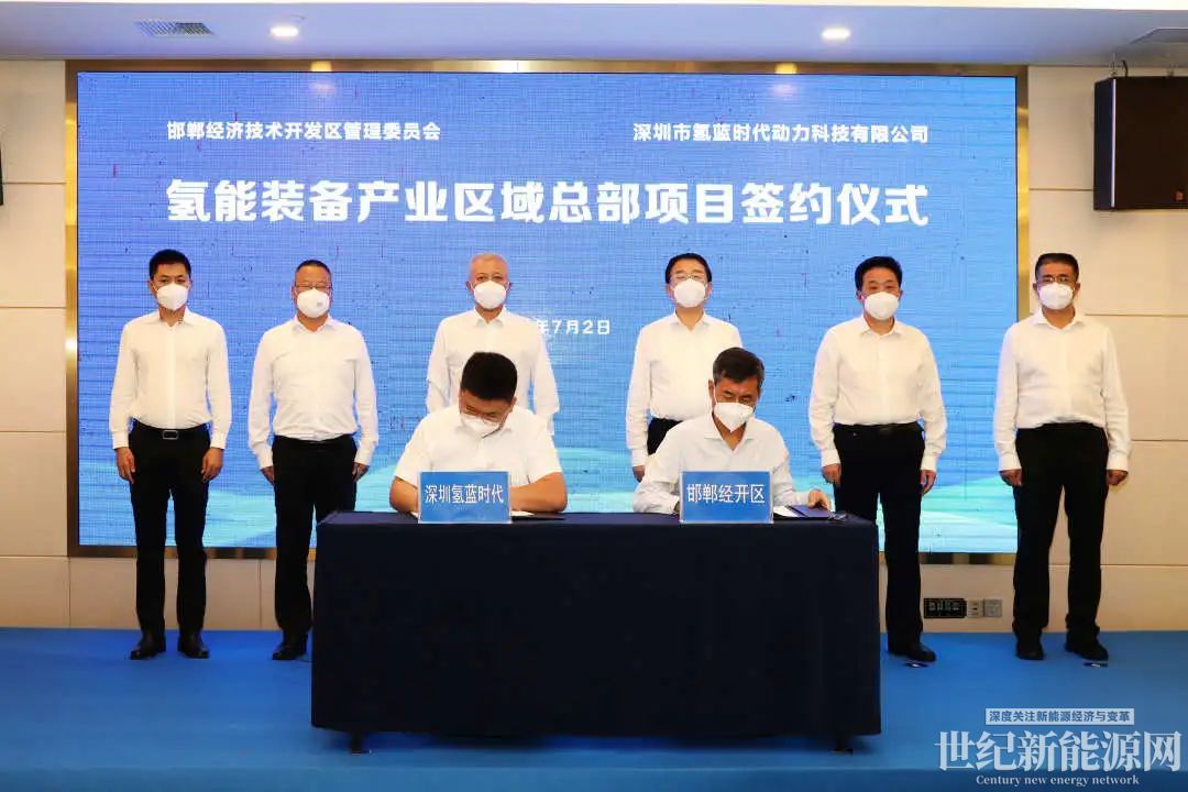 7月2日,河北省邯郸市人民政府与深圳市氢蓝时代动力科技有限公司在佛山市正式签署氢能装备产业区域总部项目战略合作协议。2020年以来,邯郸市先后发布了“氢十条”、“加快氢能产业发展实施方案”等政策;今年初,邯郸市成功入选全国氢燃料电池汽车示范城市群,助推邯郸市氢能产业发展进入了快车道。此次与氢蓝时代的战略签约,是邯郸市在推动氢能产业集聚发展、强链补链的一次重大突破。